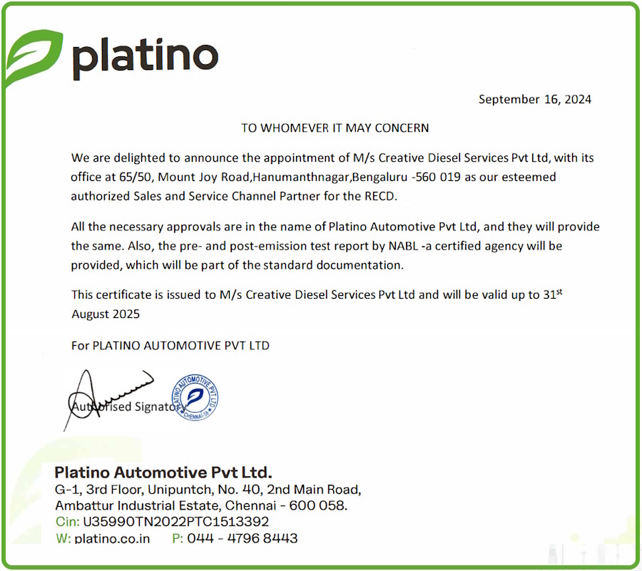 CPCB approved retrofitted emission control device for DG Set. Creative Diesel Services is the trusted dealer & supplier. A wide range of RECD for diesel generator sets, ranging from 125KVA to 2500KVA.